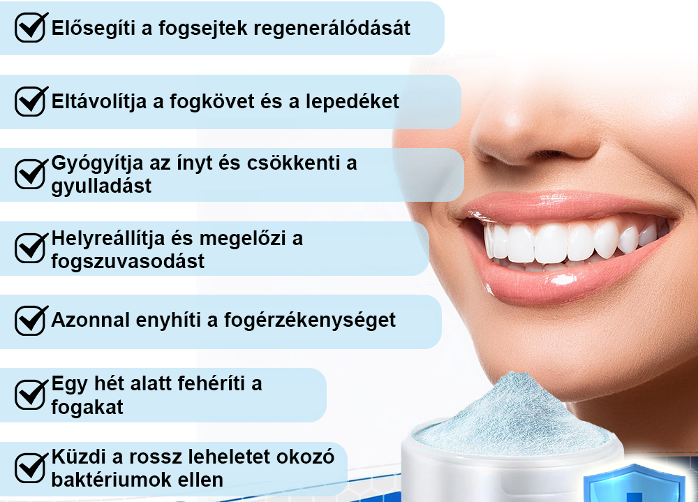 • Éld ĂĄt a fogĂ­ny szövetĂ©nek jelentƑs regenerĂĄciĂłjĂĄt Ă©s a fogszerkezet megerƑsödĂ©sĂ©t.