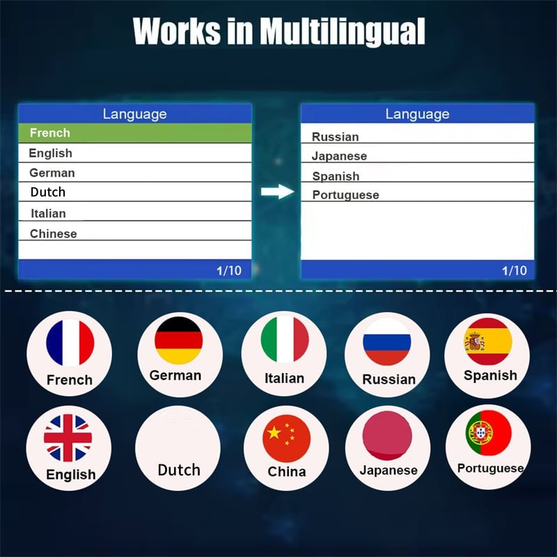 TĂBB NYELVư TĂMOGATĂS: 10 nyelvet tĂĄmogat: angol, nĂ©met, francia, spanyol, olasz, orosz, holland, kĂnai, japĂĄn Ă©s portugĂĄl â ideĂĄlis nemzetközi sofĆrök szĂĄmĂĄra.