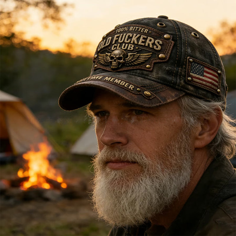 Robusztus vintage hímzés — Mutasd meg hitelességedet az „Old-School Club”, „100% Bitter” és „Lifetime Member” feliratokkal ellátott címerekkel. Ez a sapka egyfajta kitüntetés, amely a megalkuvás nélküli, robusztus életmóddal töltött életet ünnepli.
